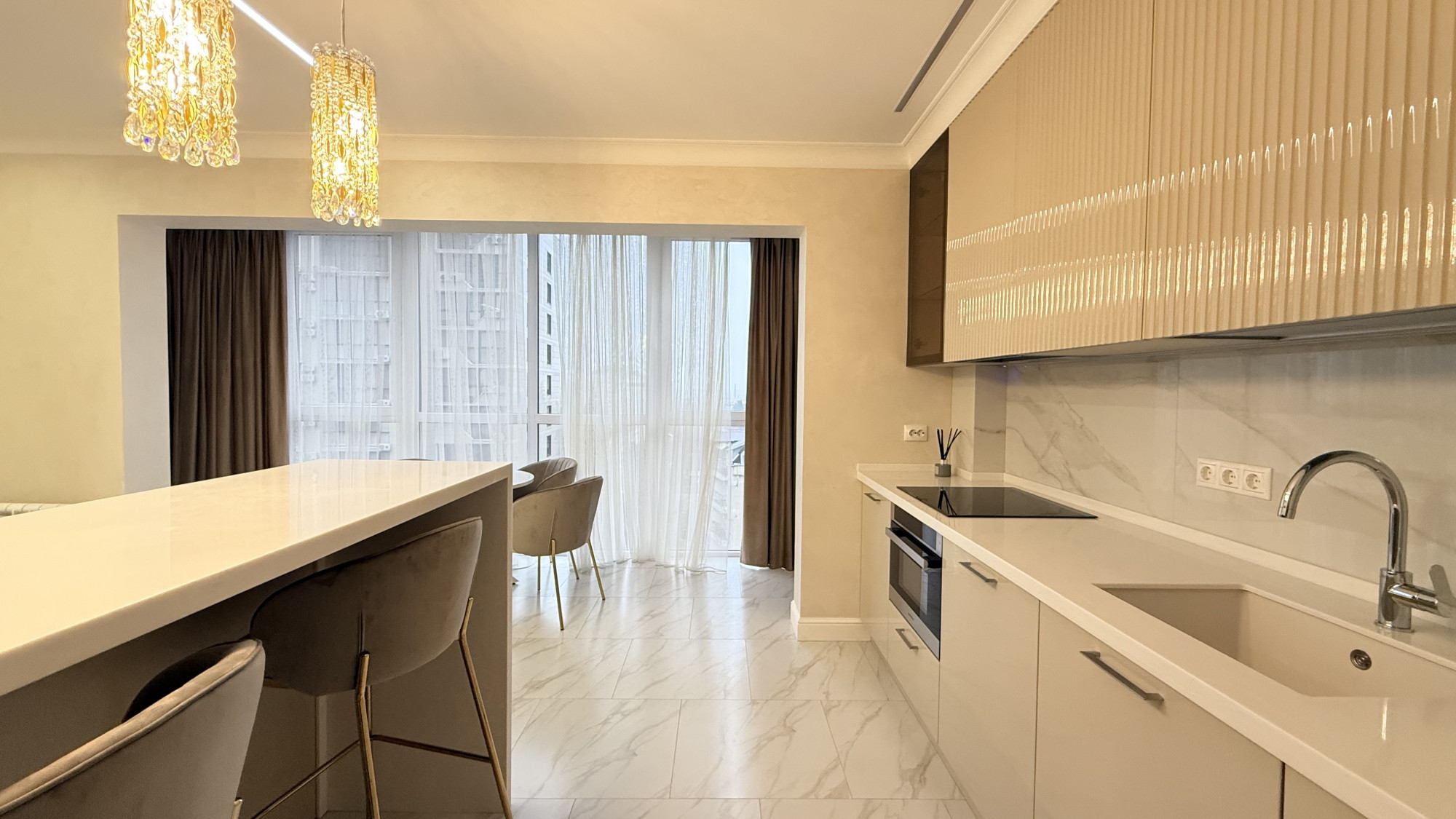Квартира очень светлая, функциональная планировка позволяет максимально использовать пространство для комфортного проживания. В отделке использованы только качественные и дорогие материалы, продуманы все детали для вашего удобства и уюта.