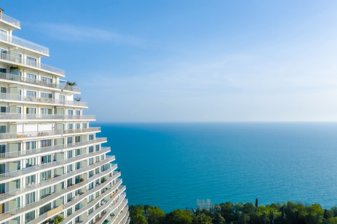 Комфортабельные квартиры имеют размеры от 50 до 400 квадратных метров. Из всех открывается красивая панорама моря. Внутренняя отделка апартаментов выполняется в соответствие с пожеланиями владельца. В качестве напольного покрытия использованы керамическая плитка, ламинат, ковролин, стены украшают обои и качественная декоративная штукатурка, предусмотрена установка сантехники, монтаж металлопластиковых оконных конструкций, входной металлической двери. В здании функционируют высокоскоростные панорамные лифты.